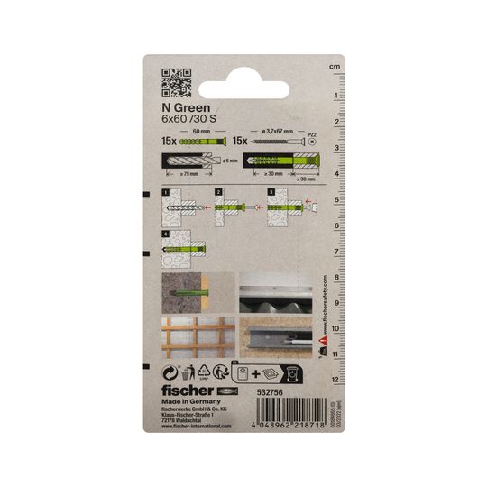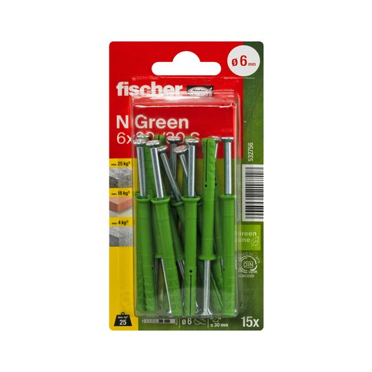 Nageldübel N Green 6x60/30 mit Schraube 4x64Z,VE 15
