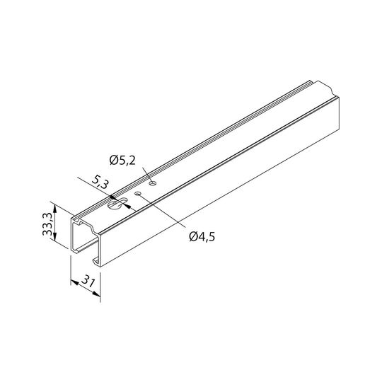 OT-Laufprofil,1700mm,Aluminium 60,silberfarbig,eloxiert oben gelocht