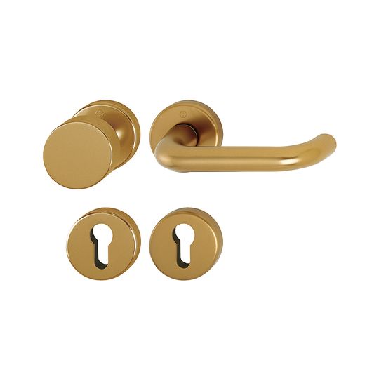 HOPPE Wechselgarnitur Paris 58/42KV/42KVS/138L; Produkttyp: Wechselgarnitur; Produkttyp (Hersteller): Wechselgarnitur; Ausführung: Rosette; Befestigungsart Drückerrosette (außen): verdeckt verschraubt; Befestigungsart Drückerrosette (innen): verdeckt verschraubt; Befestigungsart Schlüsselrosette (außen): verdeckt verschraubt; Befestigungsart Schlüsselrosette (innen): verdeckt verschraubt; Befestigungstechnik: mit Stütznocken; Form Drückerrosette: rund; Form Schlüsselrosette (außen): rund; Form Schlüsselrosette (innen): rund; Vierkant: 8 mm; Material: Aluminium; Form Türgriff (innen): U-Form; Form Türgriff (außen): Flachknopf; Ausführung Türgriff (außen): fest; Durchmesser Türgriff (innen): 18; Durchmesser Türgriff (außen): 50; Durchmesser Schlüsselrosette: 52 mm; Länge Türgriff (innen): 132; Höhe Türgriff (innen): 55; Höhe Türgriff (außen): 40; Durchmesser Drückerrosette (außen): 52 mm; Durchmesser Drückerrosette (innen): 52 mm; Höhe Drückerrosette (außen): 9 mm; Höhe Drückerrosette (innen): 9 mm; Höhe Schlüsselrosette (außen): 9 mm; Höhe Schlüsselrosette (innen): 9 mm; Lagerung: wartungsfreies Gleitlager,mit Rückholfeder; Einsatzbereich: Objekttür; Türart: Vollblatt; Türwerkstoff: Holz,Stahl; Lochung: Profilzylinder gelocht; DIN-Richtung: DIN Links-Rechts; Farbe: braun; Farbton: bronzefarben; Oberfläche: eloxiert; Ausführung Vierkant: Vierkantstift; Türstärke min.: 37 mm; Türstärke max.: 42 mm; Norm: DIN EN 1906