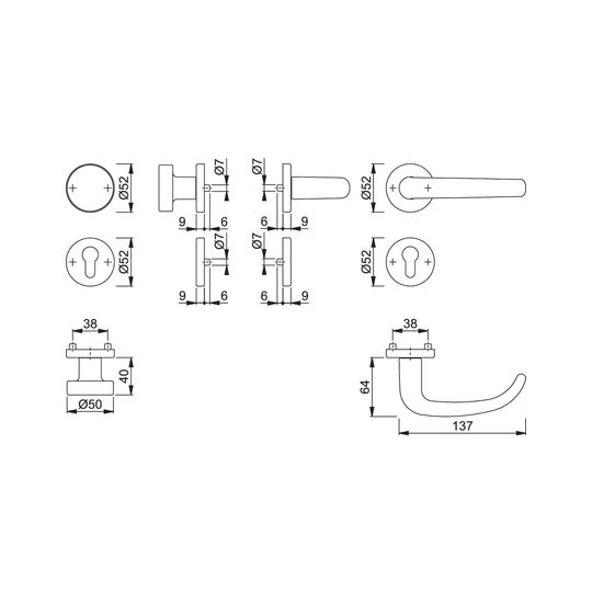 Durchmesser Drückerrosette (außen)52.00 mm