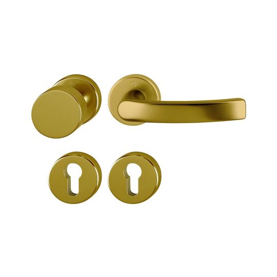 HOPPE Wechselgarnitur Luxembourg 58/42KB/42KBS/199; Produkttyp: Wechselgarnitur; Produkttyp (Hersteller): Wechselgarnitur; Ausführung: Rosette; Befestigungsart Drückerrosette (außen): aufsteckbar; Befestigungsart Drückerrosette (innen): aufsteckbar; Befestigungsart Schlüsselrosette (außen): aufsteckbar; Befestigungsart Schlüsselrosette (innen): aufsteckbar; Befestigungstechnik: mit Stütznocken; Form Drückerrosette: rund; Form Schlüsselrosette (außen): rund; Form Schlüsselrosette (innen): rund; Vierkant: 8 mm; Material: Aluminium; Form Türgriff (innen): gebogen; Form Türgriff (außen): Flachknopf; Ausführung Türgriff (außen): fest; Gewinde Knopf/Griffplatte: M12; Durchmesser Türgriff (außen): 50; Durchmesser Schlüsselrosette: 52 mm; Länge Türgriff (innen): 132; Höhe Türgriff (innen): 56; Höhe Türgriff (außen): 40; Durchmesser Drückerrosette (außen): 52 mm; Durchmesser Drückerrosette (innen): 52 mm; Höhe Drückerrosette (außen): 9 mm; Höhe Drückerrosette (innen): 9 mm; Höhe Schlüsselrosette (außen): 9 mm; Höhe Schlüsselrosette (innen): 9 mm; Lagerung: wartungsfreies Gleitlager,mit Rückholfeder; Einsatzbereich: Objekttür; Türart: Vollblatt; Türwerkstoff: Holz,Stahl; Lochung: Profilzylinder gelocht; DIN-Richtung: DIN Links-Rechts; Farbe: braun; Farbton: bronzefarben; Oberfläche: eloxiert; Ausführung Vierkant: Rollenwechselstift; Türstärke min.: 37 mm; Türstärke max.: 47 mm; Norm: DIN EN 1906