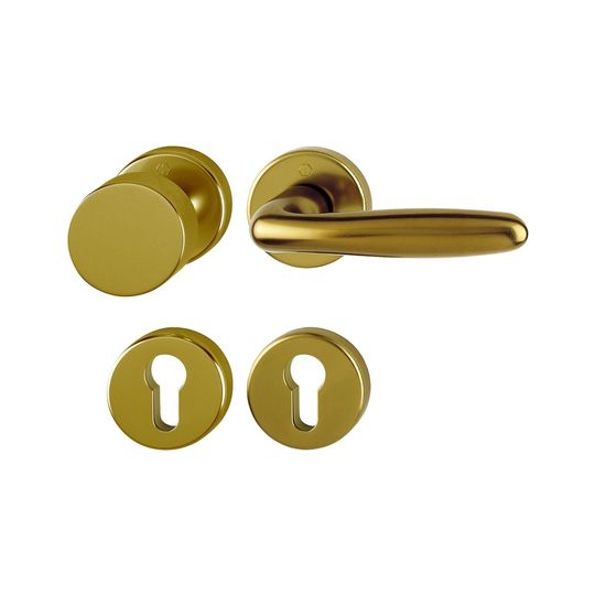 HOPPE Wechselgarnitur Verona 58/42KB/42KBS/1510; Produkttyp: Wechselgarnitur; Produkttyp (Hersteller): Wechselgarnitur; Ausführung: Rosette; Befestigungsart Drückerrosette (außen): aufsteckbar; Befestigungsart Drückerrosette (innen): aufsteckbar; Befestigungsart Schlüsselrosette (außen): aufsteckbar; Befestigungsart Schlüsselrosette (innen): aufsteckbar; Befestigungstechnik: mit Stütznocken; Form Drückerrosette: rund; Form Schlüsselrosette (außen): rund; Form Schlüsselrosette (innen): rund; Vierkant: 8 mm; Material: Aluminium; Form Türgriff (innen): L-Form; Form Türgriff (außen): Flachknopf; Ausführung Türgriff (außen): fest; Gewinde Knopf/Griffplatte: M12; Durchmesser Türgriff (außen): 50; Durchmesser Schlüsselrosette: 52 mm; Länge Türgriff (innen): 124; Höhe Türgriff (innen): 54; Höhe Türgriff (außen): 40; Durchmesser Drückerrosette (außen): 52 mm; Durchmesser Drückerrosette (innen): 52 mm; Höhe Drückerrosette (außen): 9 mm; Höhe Drückerrosette (innen): 9 mm; Höhe Schlüsselrosette (außen): 9 mm; Höhe Schlüsselrosette (innen): 9 mm; Lagerung: wartungsfreies Gleitlager,mit Rückholfeder; Einsatzbereich: Objekttür; Türart: Vollblatt; Türwerkstoff: Holz,Stahl; Lochung: Profilzylinder gelocht; DIN-Richtung: DIN Links-Rechts; Farbe: braun; Farbton: bronzefarben; Oberfläche: eloxiert; Ausführung Vierkant: Rollenwechselstift; Türstärke min.: 37 mm; Türstärke max.: 47 mm; Norm: DIN EN 1906