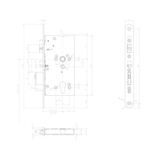 Vollblatt, Profilzylinder-Lochung, Selbstverriegelung: Riegel und Falle sind gesperrt, mechanische Ablaufsteuerung zwischen Kreuz- und Steuerfalle, integrierte Panikfunktion über den Innendrücker, ...