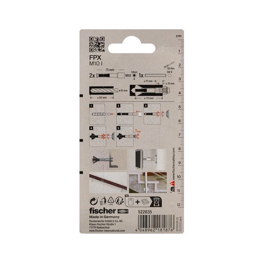 min. Bohrlochtiefe bei Vorsteckmontage95 mm