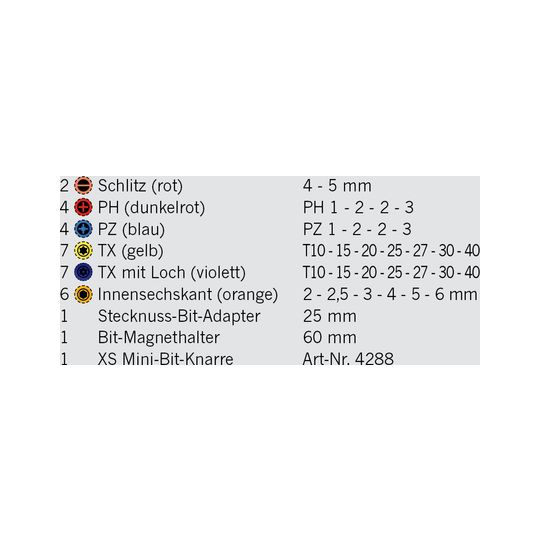 Projahn Bit Box 33 teilig 1/4" Knarre / Bits mit Farbkodierung