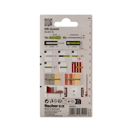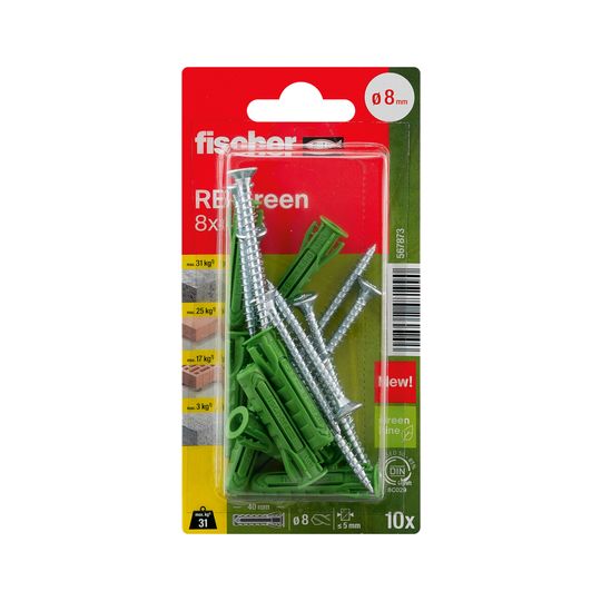 Regalbefestigung RB Green 8x40mm,m.Schraube,Kunststoff,VE 10