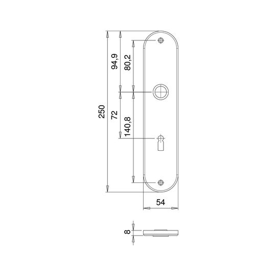 EDI Langschild 1206; Produkttyp: Langschild; Produkttyp (Hersteller): Langschild; Form: oval; Befestigungsart: sichtbar verschraubt; Anwendung: innen; Material: Edelstahl; Länge: 240 mm; Breite: 50 mm; Höhe: 8 mm; Türart: Vollblatt; Einsatzbereich: Tür; Ausführung: für Türdrücker; Stütznocken: ohne Stütznocken; DIN-Richtung: DIN Links-Rechts; Farbe: grau; Farbton: edelstahl; Oberfläche: matt; Lochung: Buntbart gelocht; Entfernung: 72 mm; Türstärke min.: 40 mm; Türstärke max.: 45 mm