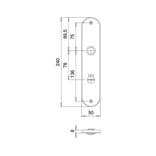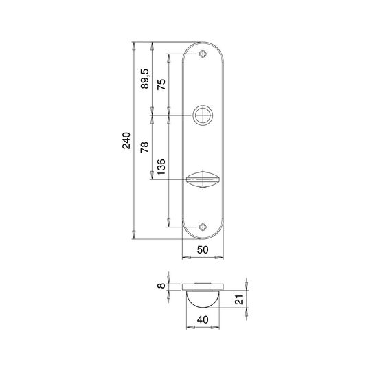 EDI Langschildpaar 1206; Produkttyp: Langschildpaar; Produkttyp (Hersteller): Langschildpaar; Form: oval; Befestigungsart: sichtbar verschraubt; Anwendung: außen/innen; Material: Aluminium; Länge: 240 mm; Breite: 50 mm; Höhe: 8 mm; Türart: Vollblatt; Einsatzbereich: Tür; Ausführung: für Türdrücker; Stütznocken: ohne Stütznocken; DIN-Richtung: DIN Links-Rechts; Farbe: silber; Farbton: naturfarben; Oberfläche: eloxiert; Lochung: WC Schauscheibe/Schlitzkopf; Entfernung: 78 mm; Türstärke min.: 40 mm; Türstärke max.: 45 mm