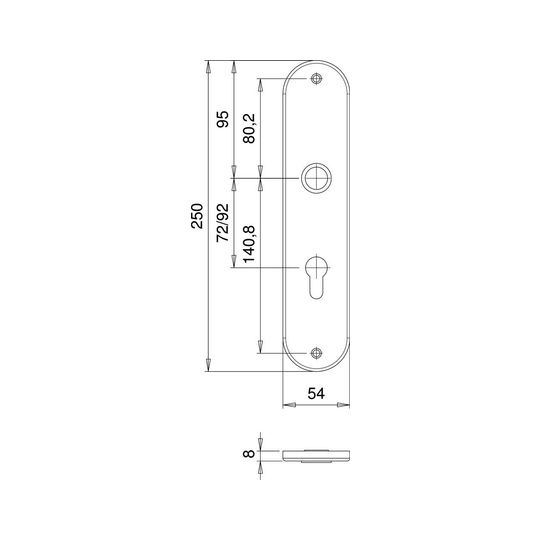 EDI Langschild 2206; Produkttyp: Langschild; Produkttyp (Hersteller): Langschild; Form: oval; Befestigungsart: sichtbar verschraubt; Anwendung: innen; Material: Edelstahl; Länge: 240 mm; Breite: 50 mm; Höhe: 8 mm; Türart: Vollblatt; Einsatzbereich: Tür; Ausführung: für Türdrücker; Stütznocken: ohne Stütznocken; DIN-Richtung: DIN Links-Rechts; Farbe: grau; Farbton: edelstahl; Oberfläche: matt; Lochung: Profilzylinder gelocht; Entfernung: 92 mm; Türstärke min.: 40 mm; Türstärke max.: 45 mm