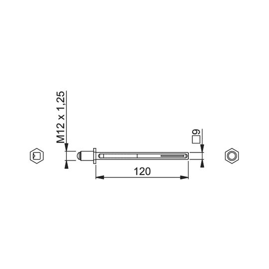 HOPPE Rollenwechselstift FDW; Produkttyp: Rollenwechselstift; Produkttyp (Hersteller): Wechselstift; Gewinde: M12; Material: Eisen; Oberfläche: verzinkt; Einsatzbereich: Türdrücker,Türknopf; Vierkant: 9 mm; Länge: 120 mm; Türstärke min.: 77 mm; Türstärke max.: 98 mm