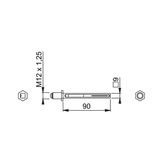 HOPPE Rollenwechselstift FDW; Produkttyp: Rollenwechselstift; Produkttyp (Hersteller): Wechselstift; Gewinde: M12; Material: Eisen; Oberfläche: verzinkt; Einsatzbereich: Türdrücker,Türknopf; Vierkant: 9 mm; Länge: 90 mm; Türstärke min.: 47 mm; Türstärke max.: 68 mm