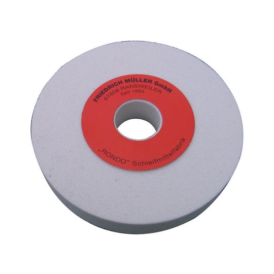 Schleifscheibe Edelkorund, weißZum Schleifen von SS- und HSS-Stählen und -Werkzeugen sowie für ungehärtete, gehärtete, legierte, nitrierte und rostfreie Stähle