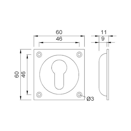 Schlüsselrosette 3204 innen,eckig o.No.,11mm,silber eloxiert