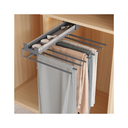 Montage unter dem Oberboden, Beschlag links oder rechts einsetzbar, Mit 9 Hosenhaltern mit rutschhemmender Beschichtung, Inklusive praktischem Ablagefach oben, Belastbarkeit 15 kg, Vollauszug, Führ...