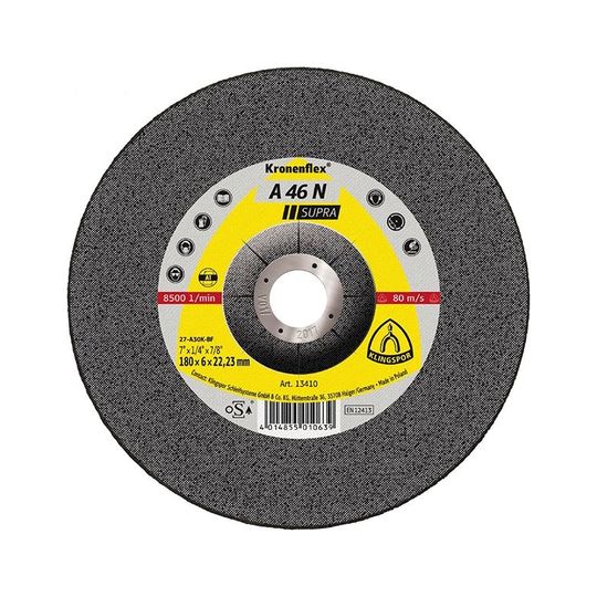 Schruppscheibe für die AluminiumbearbeitungA 46 N SupraWeiche Standardscheibe für die Bearbeitung von Aluminium sowie allen anderen NE-Metallen. Normbohrung 22,23 mm