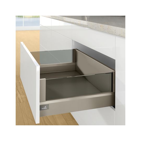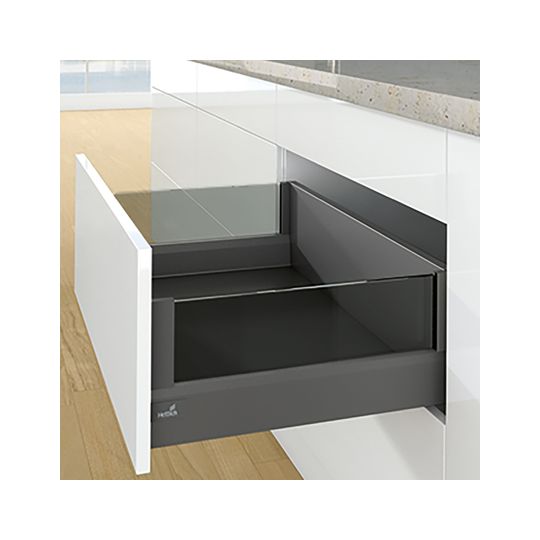HETTICH Designelement ArciTech 9282683; Ausführung: DesignSide,für seitliche Montage,mit aufgeklebten Verbindern; Werkstoff: Glas; Einsatzbereich: Schubkasten; Farbe: grau; Montage: links/rechts,zu...