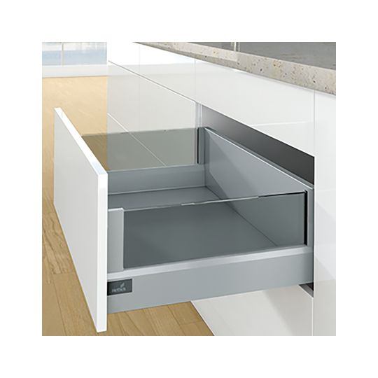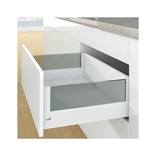 HETTICH Designelement ArciTech 9282683; Ausführung: DesignSide,für seitliche Montage,mit aufgeklebten Verbindern; Werkstoff: Glas; Einsatzbereich: Schubkasten; Farbe: grau; Montage: links/rechts,zum Einklemmen; Nennlänge: 650 mm; Zargenhöhe: 94 + 126 mm; Basis: Designelement; Frontauszugshöhe: 218 + 250 mm