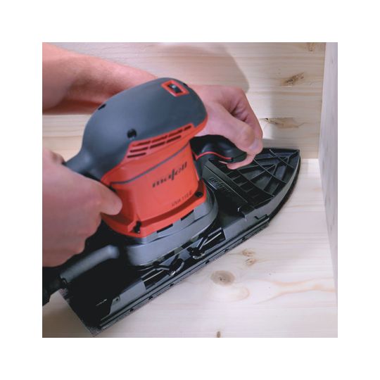 Wenn auch Kunststoff oder Lack-Oberflächen behandelt werden sollen, kann die Drehzahl über die elektronische Einstellung mit Rastfunktion angepasst werden. Hierdurch wird Hitze und anschließendes Verkleben des Schleifpapiers vermieden. Der MAFELL-Motor ist mit einem neuen Anker versehen, der mit der neu entwickelten Schleifplattenaufnahme speziell für die Anforderungen des UVA 115 E konstruiert wurden. Die Staubabdichtung des Schwingschleifers ist äußerst effektiv und fördert eine hohe Lebensdauer. Softgripeinlagen erhöhen die Griffigkeit des UVA 115 E. Das fördert ermüdungsfreies Arbeiten und bringt mehr Sicherheit. Der Anschluss an ein Absauggerät erfolgt über einen Standardanschluss mit Durchmesser 35 mm.