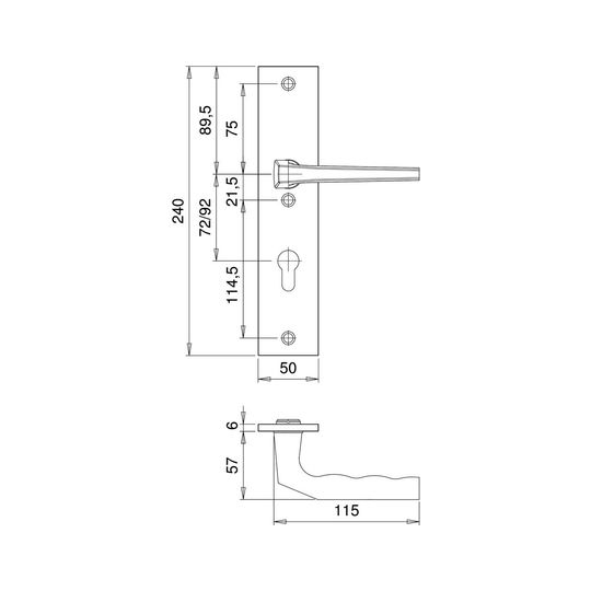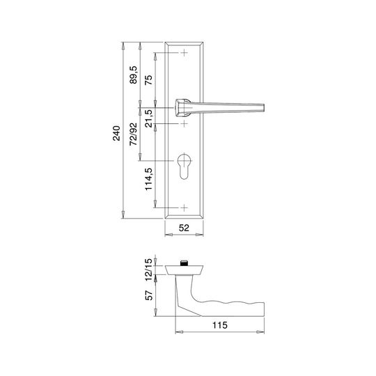 SI-Drückergrt. Alpha 8770 LS eck,12mm,ES1/PZ 72/8,F2,TS35-45