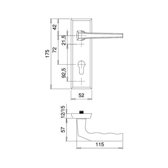 SI-Drückergrt. Alpha 8772 KS eck,12mm,ES1/PZ 72/8,F1,TS35-45