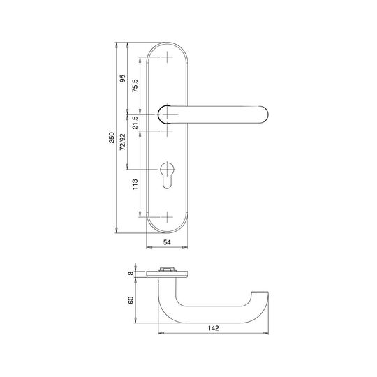 SI-Drückergrt. Delta 8732/9203 LS oval ,15mm,ES3,ZA/PZ 92/10,F1,TS69-78