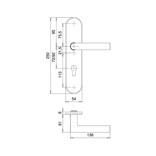 SI-Drückergrt. Europa 8497/7203 LS oval ,15mm,ES2,ZA/PZ 72/8,F1,TS35-45
