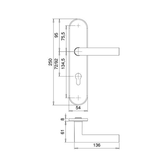 SI-Drückergrt. Lima 8760/7203 LS oval ,12mm/PZ 72/8,ER,TS35-45
