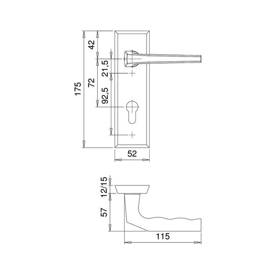 SI-Drückergrt. Rondo 8638 KS eck,12mm,ES0/PZ 72/8,F2,TS35-45