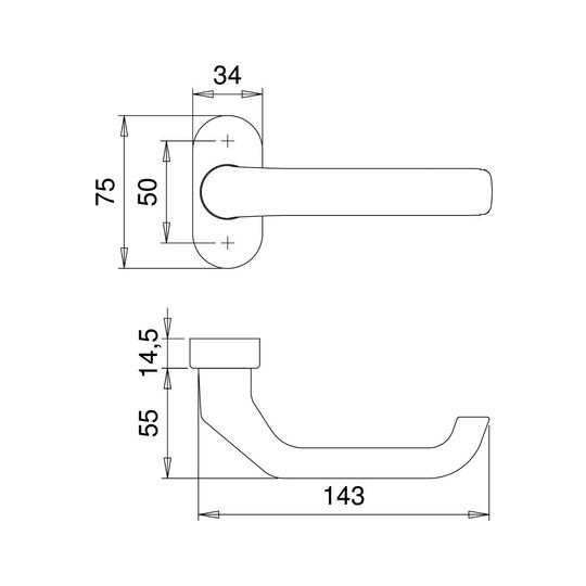 Höhe Drückerrosette (innen)14.50 mm