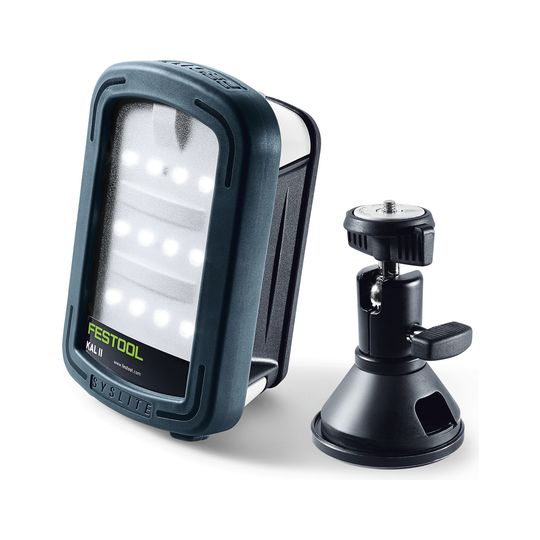 - 2in1 Haftkugelkopf zum Fixieren der Arbeitsleuchte SYSLITE KAL II mittels integriertem Dauermagnet oder mittels Festool FS-Schraubzwinge