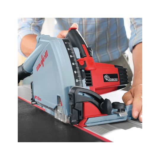 Die Idee eine neue Tauchsäge zu entwickeln ist nicht neu. Neu war es aber, alle Bestandteile einer Maschine so zu konzipieren, dass ein einzigartiges Präzisionsprodukt entstand. Die Tauchsäge MT 55 cc mit dem Saug-Spann-System Aerofix F-AF 1 sorgt für perfekte Schnitte bei einfachster Handhabung. Die Vorritzfunktion ist mit einem Handgriff aktiviert. Damit sägt die MT 55 cc so saubere Sichtkanten wie eine stationäre Maschine und das auch bei abgenutztem Spanreißschutz. Die MT 55 cc ist mit stufenloser Drehzahleinstellung für verschiedenste Materialien und Sägeblätter ausgestattet. Jetzt sind Schnitttiefen (ohne Schiene) bis 57 mm möglich. Durch das innovative Schwenksystem sind selbst bei Schrägschnitten kaum Grenzen gesetzt.