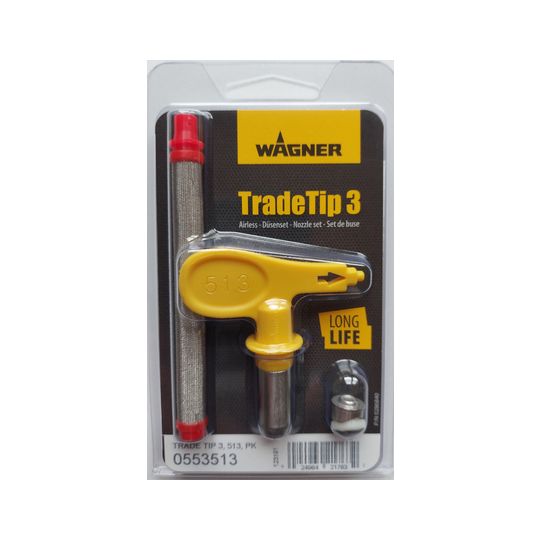 WAGNER TradeTip 3 Airless Düsen sind extra langlebig: Die neuartige Düsenbohrung und Hartmetalllegierung reduzieren den Verschleiß und ermöglichen einen konstanten Spritzwinkel. Außerdem ist die Düse besonders reinigungsfreundlich – einfach drehen und spülen – ganz ohne Werkzeug. Im Lieferumfang der WAGNER Airless Düse ist eine Doppeldichtung und der passende Pistolenfilter gratis dabei. Dadurch hat der Anwender automatisch den perfekt auf das Material abgestimmten Filter zur Hand.