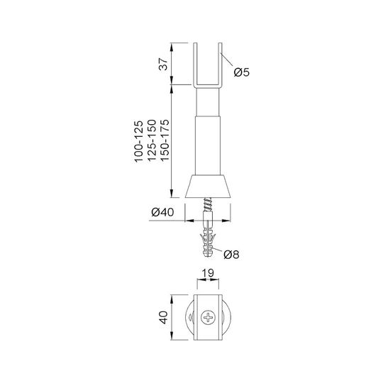 GA-Trennwandstütze, 4251, Aluminium, neusilberfarbig, eloxiert, Höhe: 100-125 mm