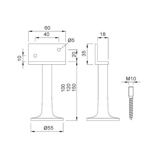 GA-Trennwandstütze, 4261, Aluminium, neusilberfarbig, eloxiert, H 150 mm