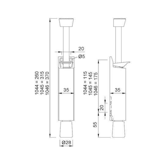 KWS 1044 Türfeststeller 60mm Hub, Stopfen schwarz