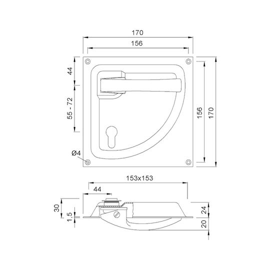 Turnhallenbeschlag 5065 eckig,170x170,Stiftteil,UG,9mm,sw lackiert