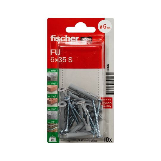 Universaldübel FU 6x35mm,KU,m.Schraube,VE 10