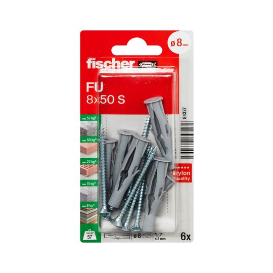 Universaldübel FU 8x50mm,KU,m.Schraube,VE 6