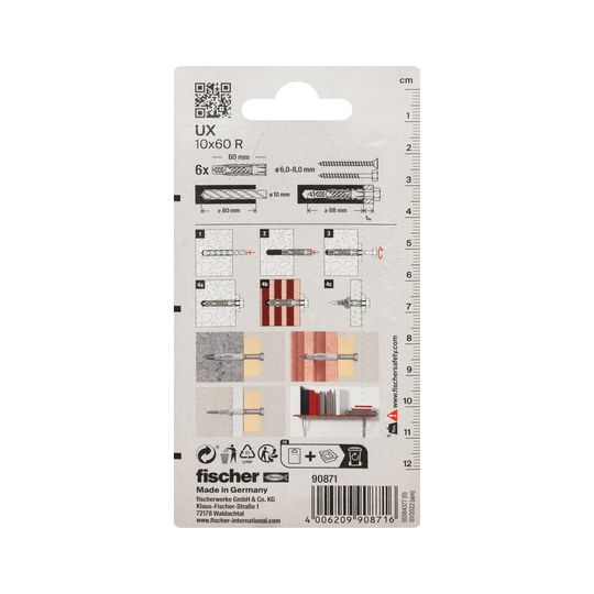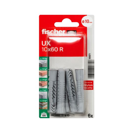 Universaldübel UX 10x60mm,KU,m.Rand,VE 6