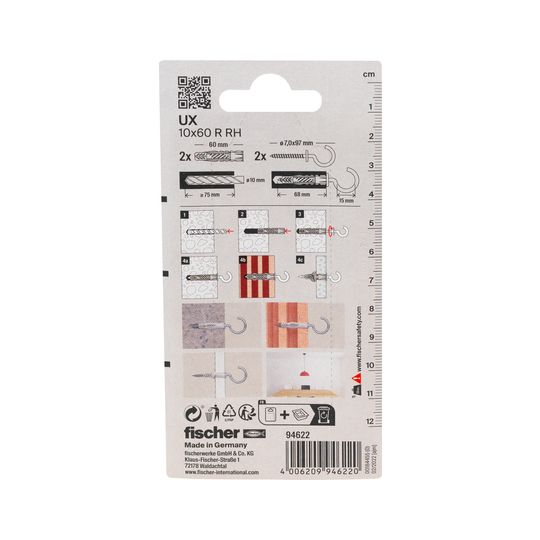 Universaldübel UX 10x60mm,KU,m.Rundhaken,VE 2