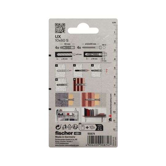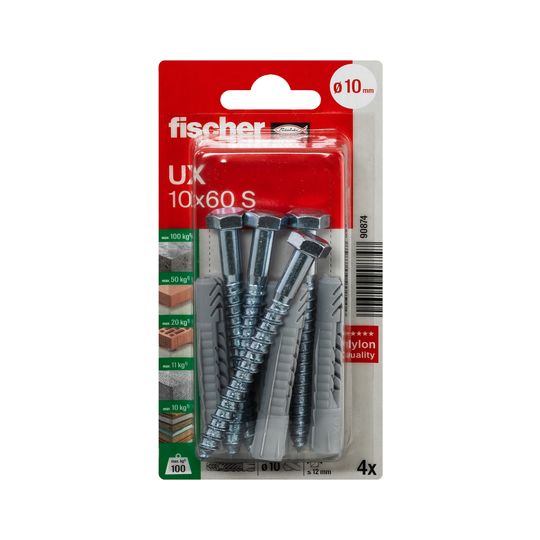 Universaldübel UX 10x60mm,KU,m.Schraube,VE 4