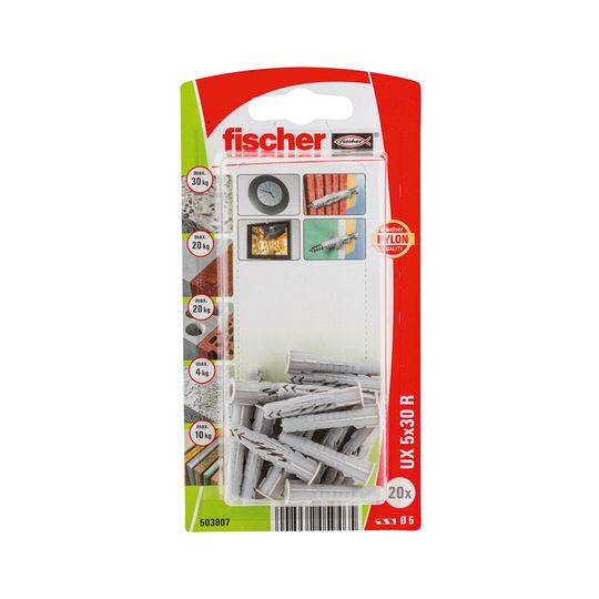 Universaldübel UX 5x30mm,KU,m.Rand,VE 20