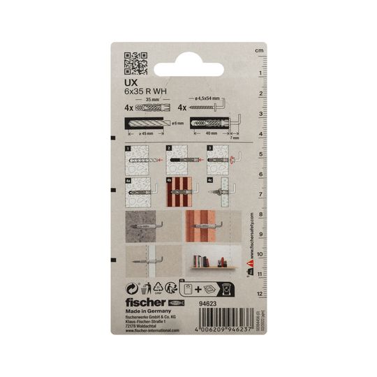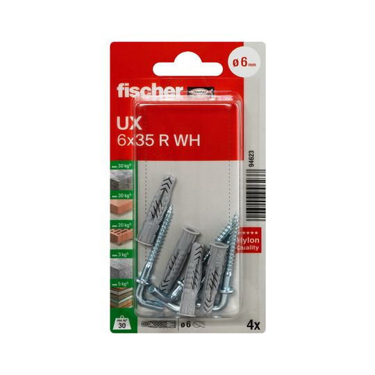 Universaldübel UX 6x35mm,KU,m.Winkelhaken,VE 4