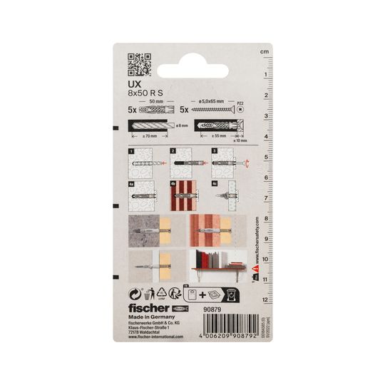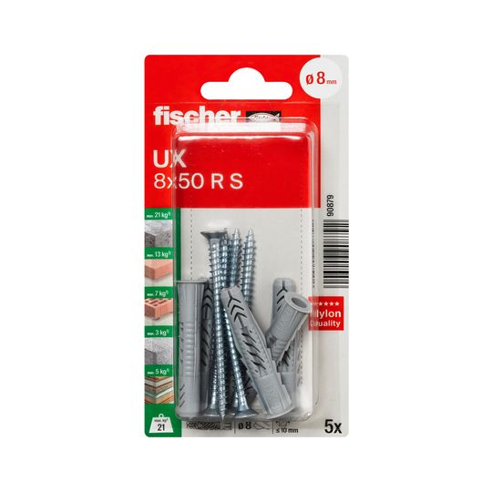 Universaldübel UX 8x50mm,KU,m.Rand,m.Schraube,VE 5