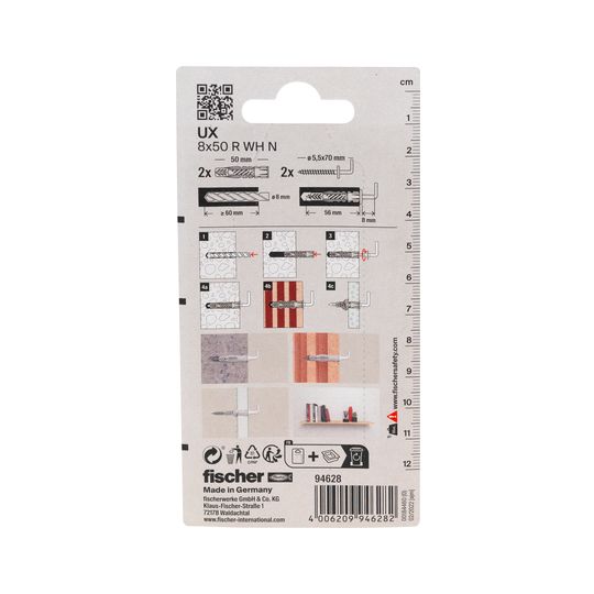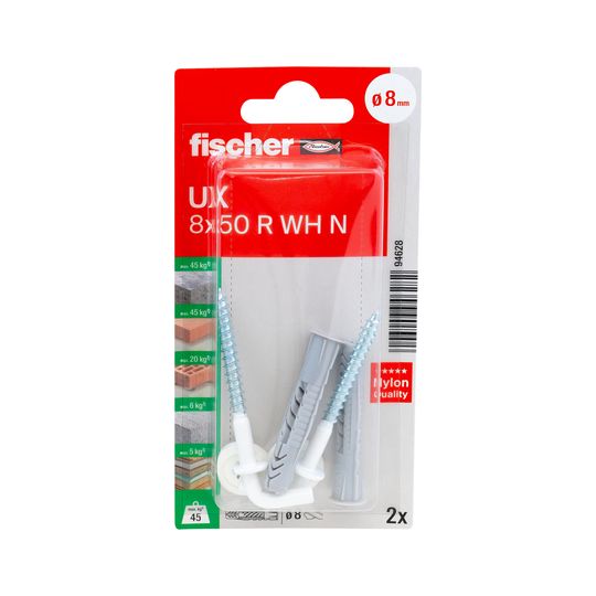 Universaldübel UX 8x50mm,KU,m.Winkelhaken Nylonbesch.,VE 2