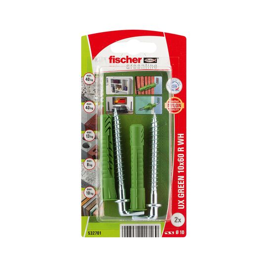 Universaldübel UX Green 10x60mm,KU,m.Rand,m.Winkelhaken,VE 2