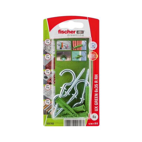 Universaldübel UX Green 6x35mm,KU,m.Rand,m.Rundhaken,VE 4