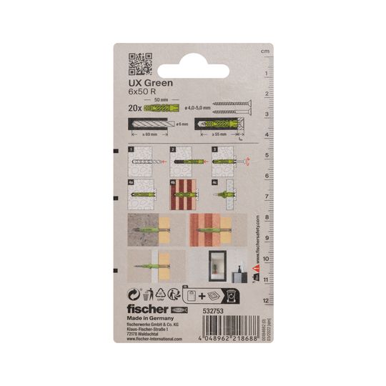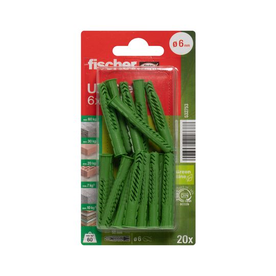 Universaldübel UX Green 6x50mm,KU,m.Rand,VE 20