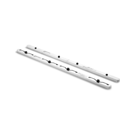 - Zwei Verbindungsstücke zum stabilen Verbinden von zwei Führungsschienen für lange Werkstücke