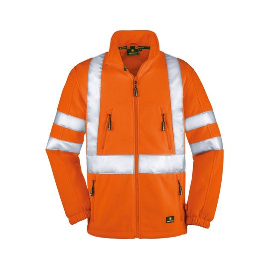 Warnschutz-Fleecejacke Seattle, Ausführung:, Warnschutzklasse 3 (Größe S: Warnschutzklasse 2), Hochfloriges Fleece, Reflexstreifen umlaufend um Körper und Ärmel, Zwei Brust- und zwei untere Reißver...